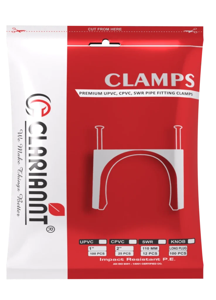 Clariannt offers a wide range of PVC clamps to meet different installation requirements. Our CPVC pipe clamps and UPVC clamps are available in sizes ranging from ½ inch to 2 inches, while SWR clamps and PVC pipe clamp fittings range from 63mm to 110mm. These sizes and CPVC plug and end plug ensure compatibility with various piping systems, making them ideal for plumbing, electrical, and industrial applications.